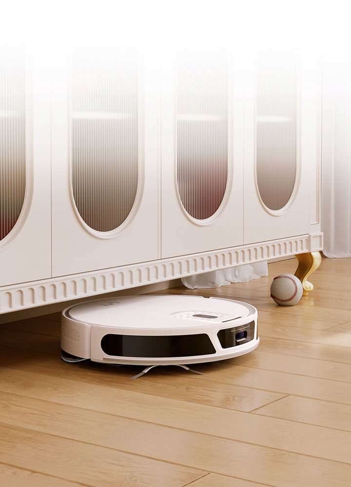 - Inteligentna nawigacja LiDAR: Dzięki zaawansowanemu systemowi nawigacji SOF LiDAR, robot precyzyjnie mapuje przestrzeń, planując optymalną trasę sprzątania i omijając przeszkody.