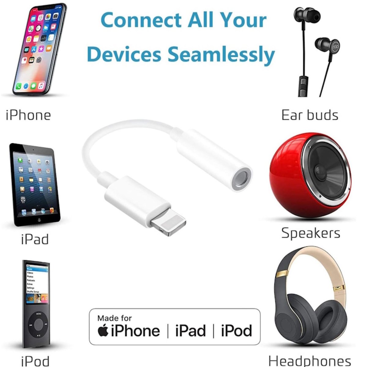 Expand your listening experience with the Apple Headphone Adapter. It lets you connect devices that use a 3.5 mm audio plug to your Lightning devices. This iPhone accessory works with all devices that have a Lightning connector and supports iOS 10 or later. including iPod touch. iPad. and iPhone. Keep it in your home. office. backpack. or vehicle at all times. or take one with you which you're on the road or on vacation. The Apple Headphone Adapter is lightweight and small in size. so you can even keep it in your pocket for easy listening whenever the mood strikes.