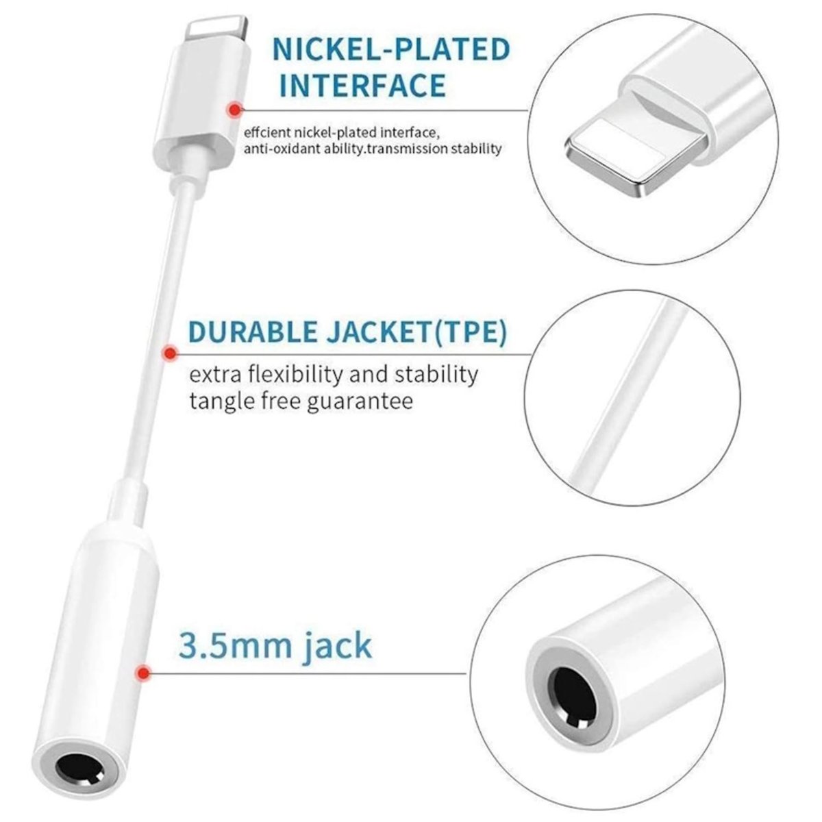 - Connection: Lightning male to 3.5mm Stereo Audio jack female