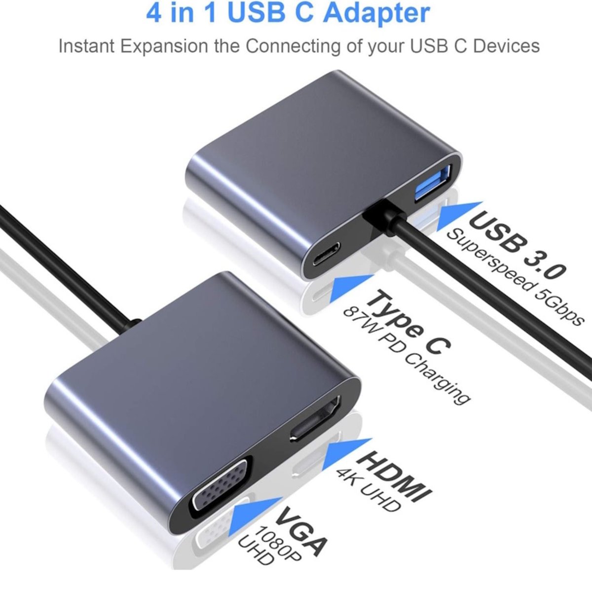 - Our 4-in-1 USB C Hub is the complete solution to your device connectivity needs. 4K HDMI and VGA Connector ports. 1 x USB 3.0 Port and USBC Type-C Port for Connection and Power Delivery up to 100W