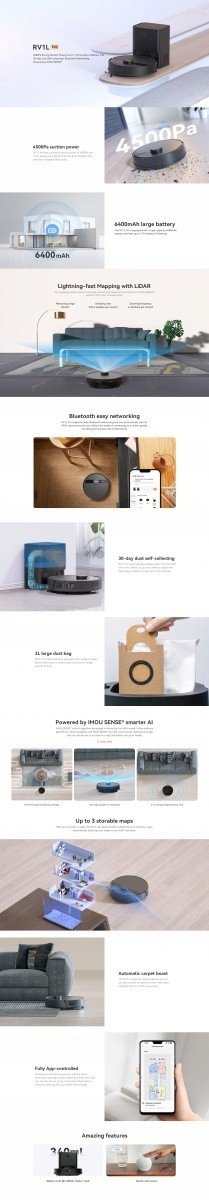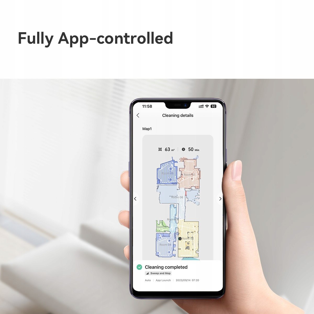 Moc ssania 6000 Pa: Trzy poziomy ssania i bardzo mocny automatyczny tryb czyszczenia dywanów, robot bez wysiłku zbiera brud, sierść zwierząt, a nawet niezauważalny kurz ukryty głęboko w dywanach.