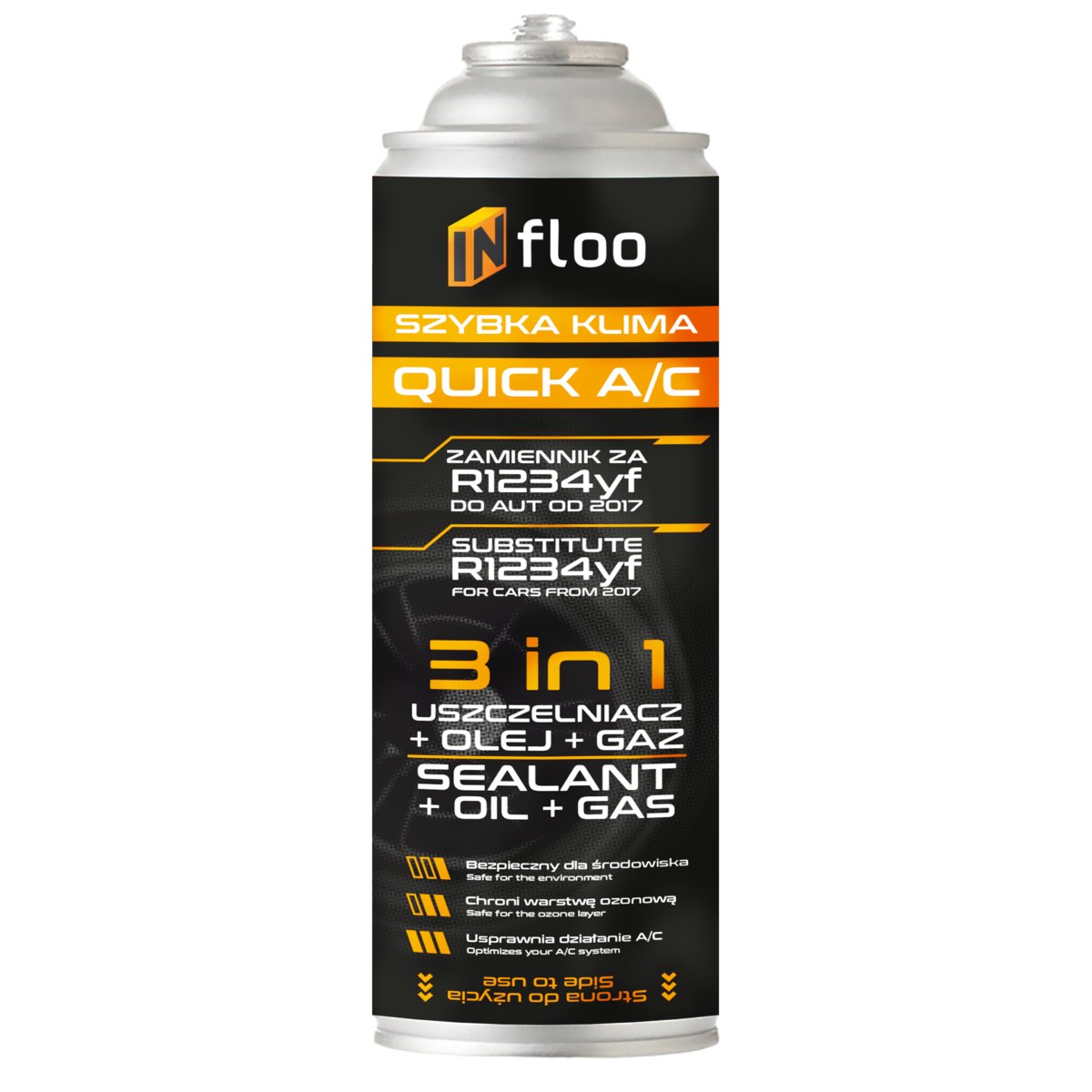 ❇️ INfloo Szybka Klima USZCZELNIACZ 3w1 R1234yf 185g z zaworem zwrotnym - do napełniania uszczelniania i smarowania układu klimatyzacji w aucie R1234yf.