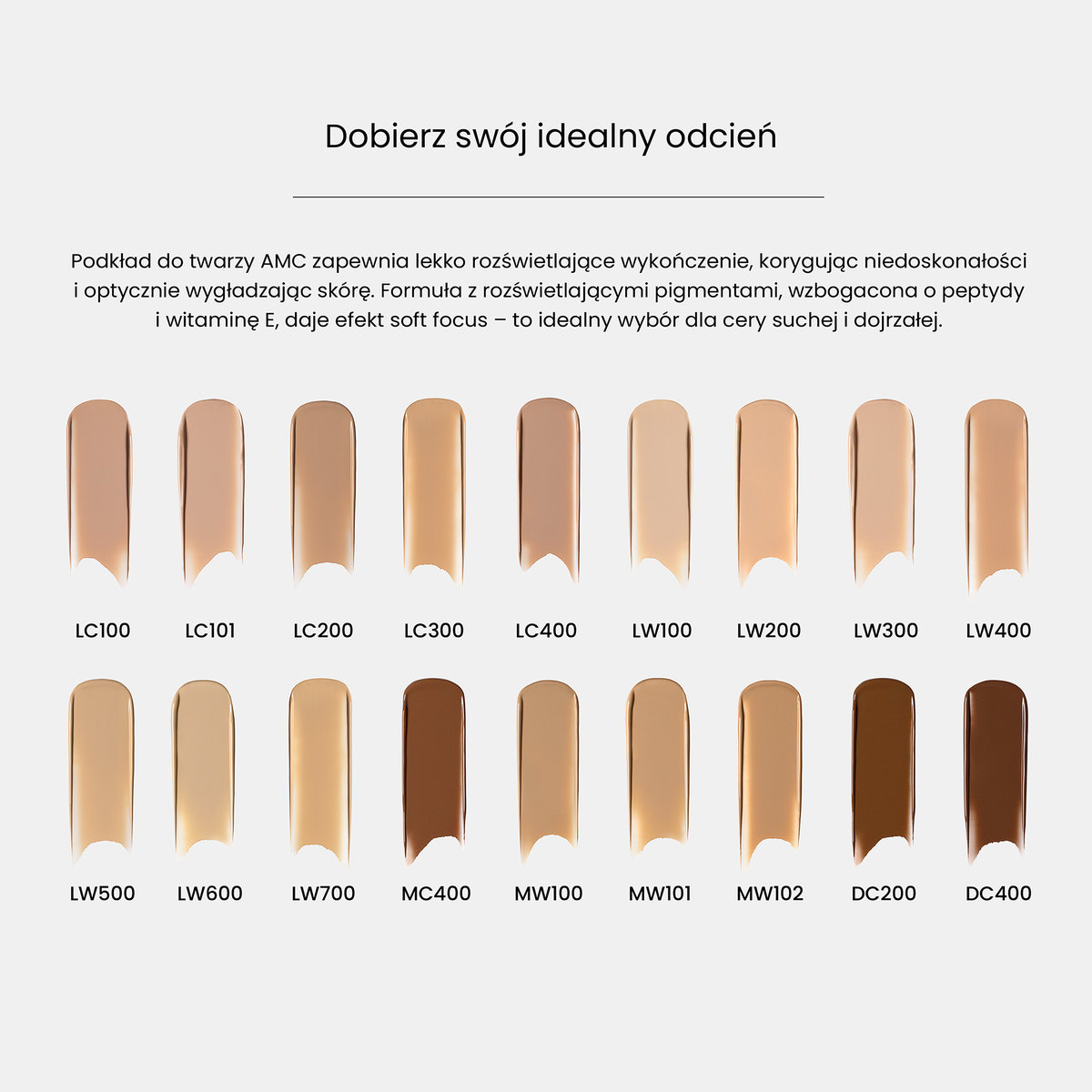 Inglot, AMC, Podkład do twarzy MW101 Podkład do twarzy, który doskonale wyrównuje niedoskonałości skóry, jednocześnie nadając efekt delikatnego rozświetlenia. Zapewnia subtelne krycie i wizualnie ...