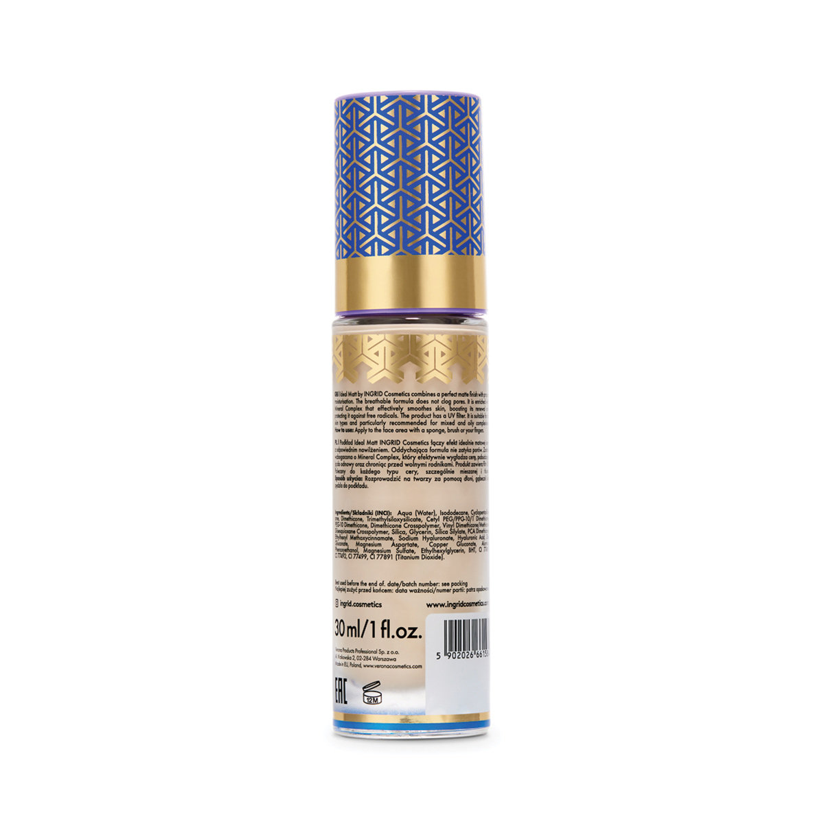 Podkład Ingrid Ideal Matt to mineralny podkład łączący efekt idealnie matowej cery z doskonałym nawilżeniem. Wyjątkowa formuła na bazie naturalnych składników pochłania nadmiar sebum i kontroluje jego wydzielanie. Mineral Complex efektywnie wygładza cerę, pobudza ją do odnowy oraz chroni przed wolnymi rodnikami. Naturalny czynnik nawilżający tworzy film ochronny, który zapobiega utracie wody, chroniąc skórę przed wysuszeniem. Nowoczesne pigmenty wyrównują koloryt i skutecznie kryją niedoskonałości, bez obciążania. Lekka, aksamitna konsystencja nie zatyka porów i pozwala skórze swobodnie oddychać . Podkład zapewnia długotrwałe, matowe wykończenie makijażu. Niweluje błyszczenie. Polecany do każdego typu cery, szczególnie mieszanej i tłustej. Jako kompleksowy podkład do twarzy zawiera również filtr UV.