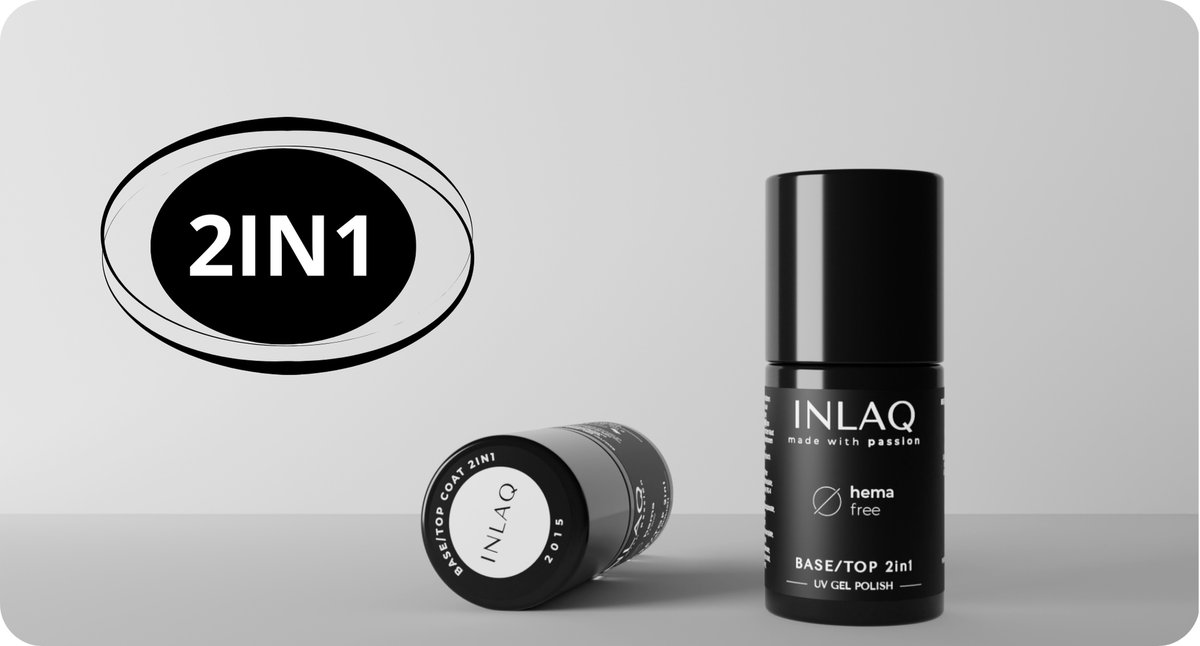 Idealny zestaw dla perfekcyjnego manicure hybrydowego! INLAQ Baza i Top 2w1 bez HEMA działa jako baza i top, zapewniając trwałość, elastyczność oraz naturalny wygląd paznokci. Samopoziomująca formuła