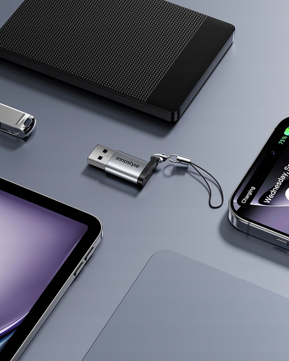 Innostyle NexaLink to ultra kompaktowy adapter, który łączy w sobie elegancki design, niezawodność i pełną funkcjonalność. Dzięki obsłudze USB 3.0 z prędkością do 5Gbps, wsparciu technologii OTG oraz możliwości ładowania do 3A, staje się niezastąpionym narzędziem w pracy, podróży i codziennym użytkowaniu. Odkryj, jak prosto możesz rozszerzyć możliwości swojego urządzenia z USB.