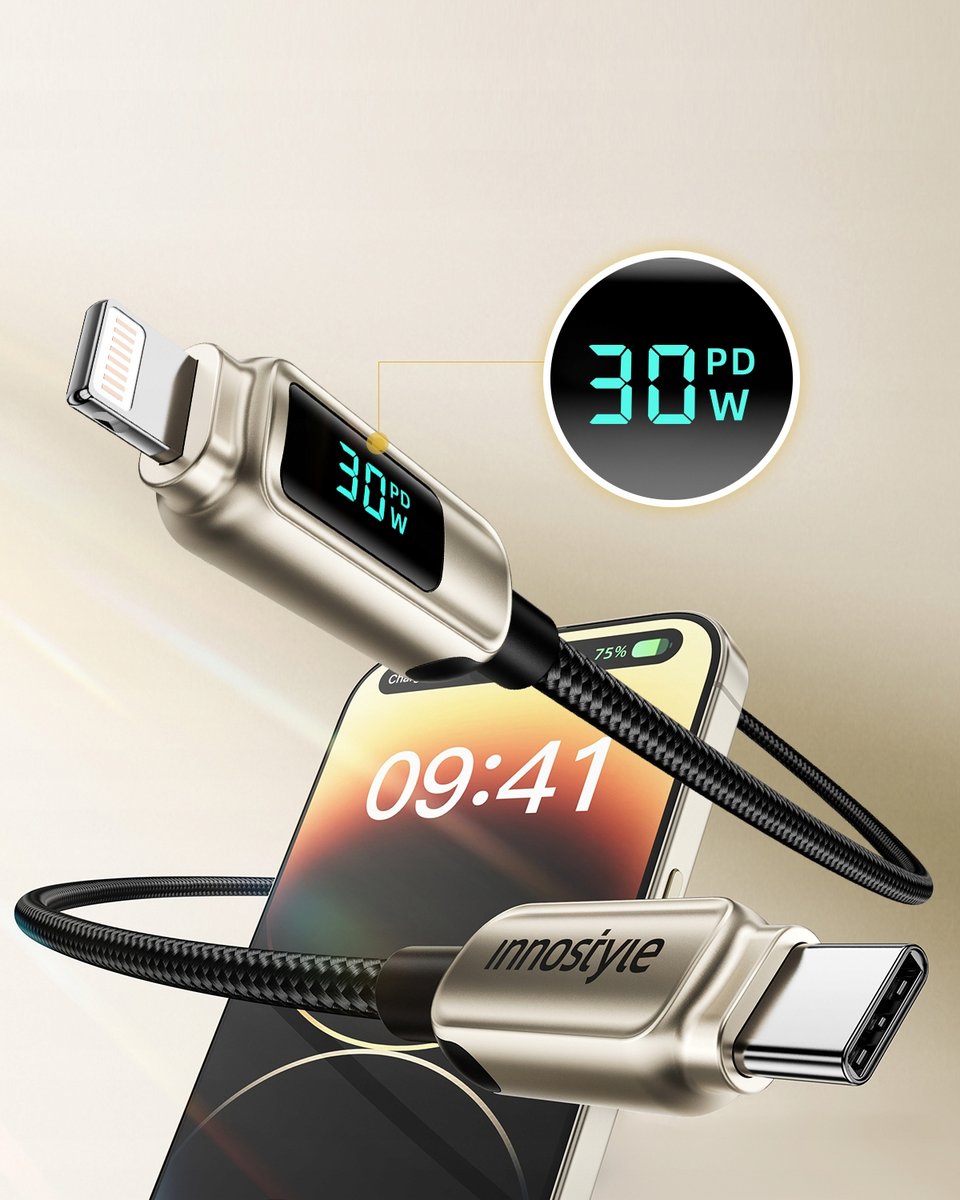 | Nazwa: | INNOSTYLE KABEL Z WYŚWIETLACZEM USB-C LIGHTNING DO IPHONE 12 13 14 30W 1M |