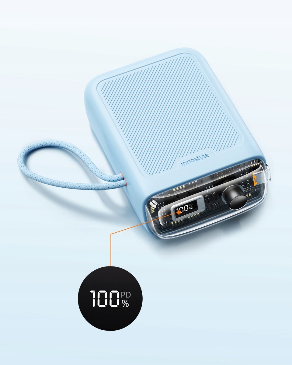 INNOSTYLE MINI POWERBANK 10000MAH 2X USB-C TYP C 33W ROZWIJANY KABEL USB-C Innostyle TransiMini FlexCharge - Powerbank 10000mAh 33WOdkryj przyszłość mobilnej energii z ...