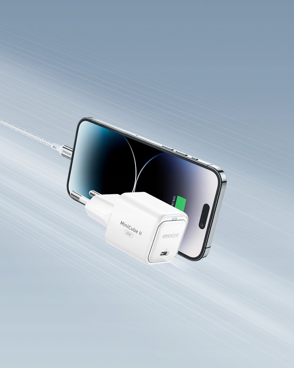 Mała ładowarka, wielka zmiana – Skorzystaj z innowacji, jaką niesie technologia chipów GaN. MiniCube II jest mniejsza, silniejsza i wydajniejsza. To rewolucja w świecie ładowarek, która zmieści się w kieszeni.