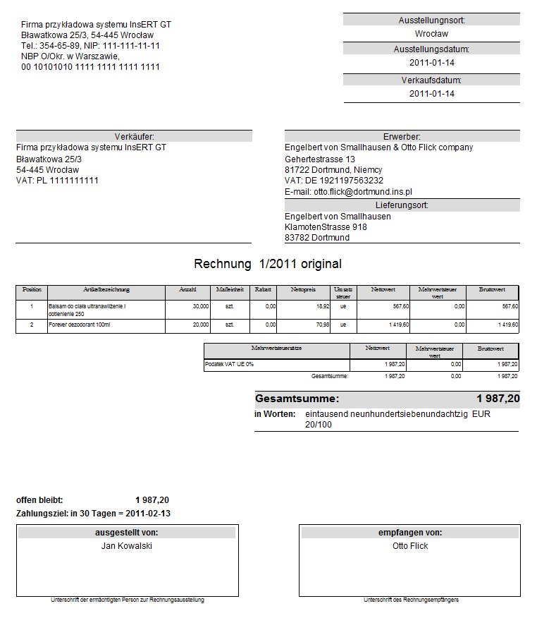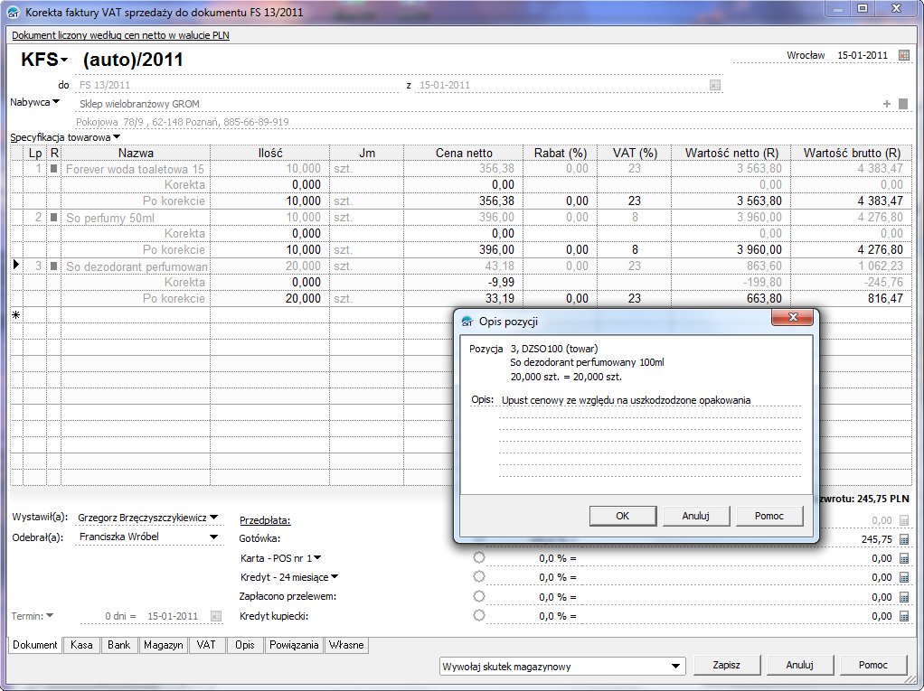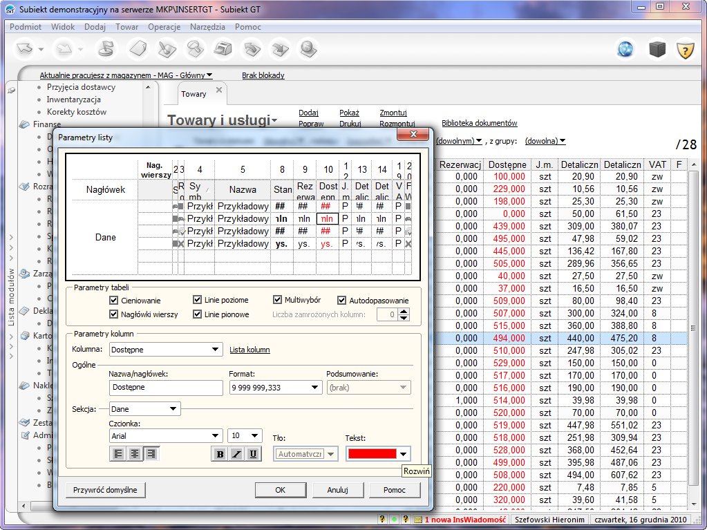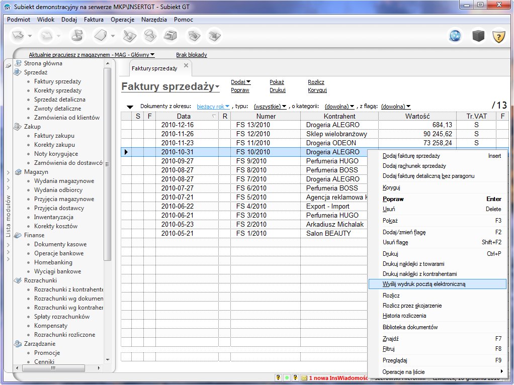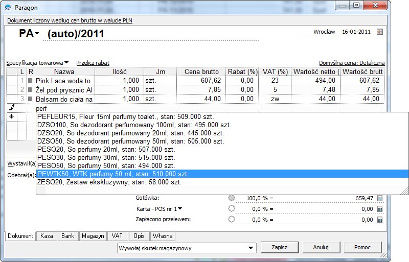 - pełna obsługa wszystkich typów dokumentów handlowych i magazynowych;