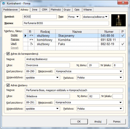 - prowadzenie kartoteki kontrahentów, obejmującej również informacje typu CRM; możliwość definiowania rubryk z dodatkowymi informacjami;