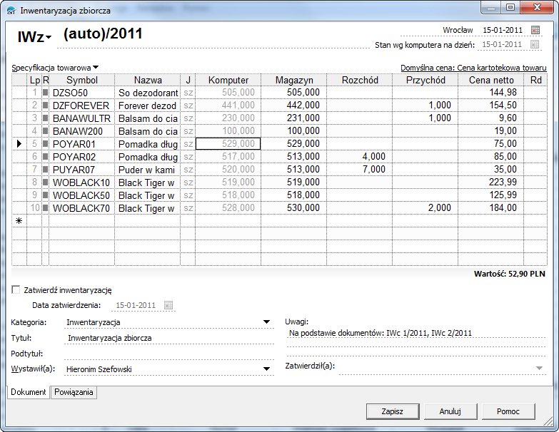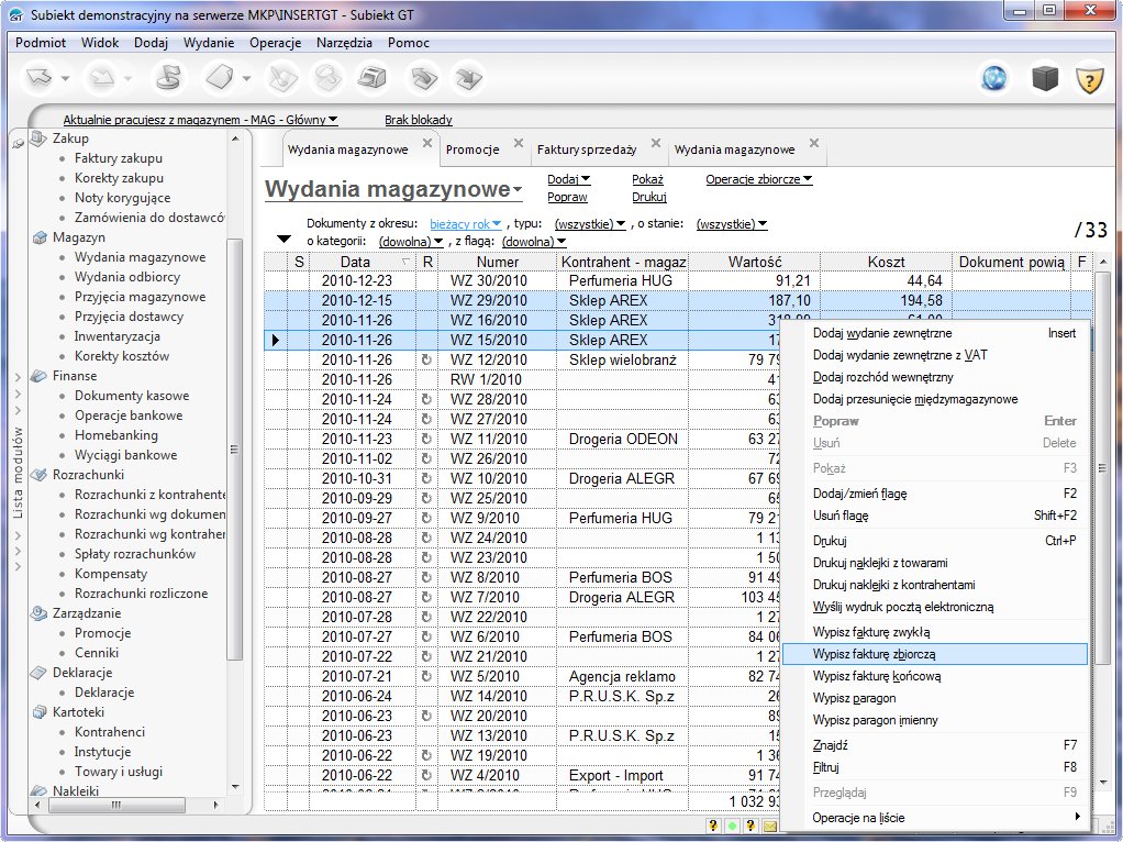 - pełny rozdział dokumentów magazynowych i handlowych, pojedyncze lub zbiorcze generowanie faktur do dokumentów WZ itp.; automatyczne generowanie dokumentu WZ do faktury;