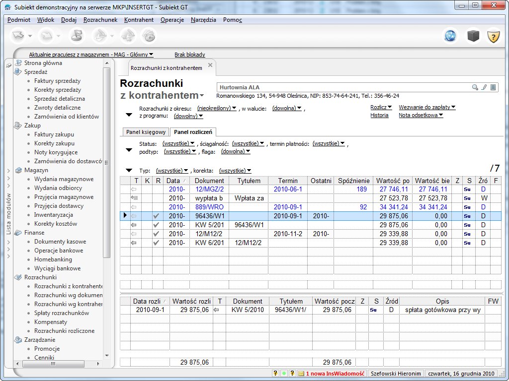 - pełna obsługa rozrachunków (należności i zobowiązań), w tym rozrachunków wielowalutowych;