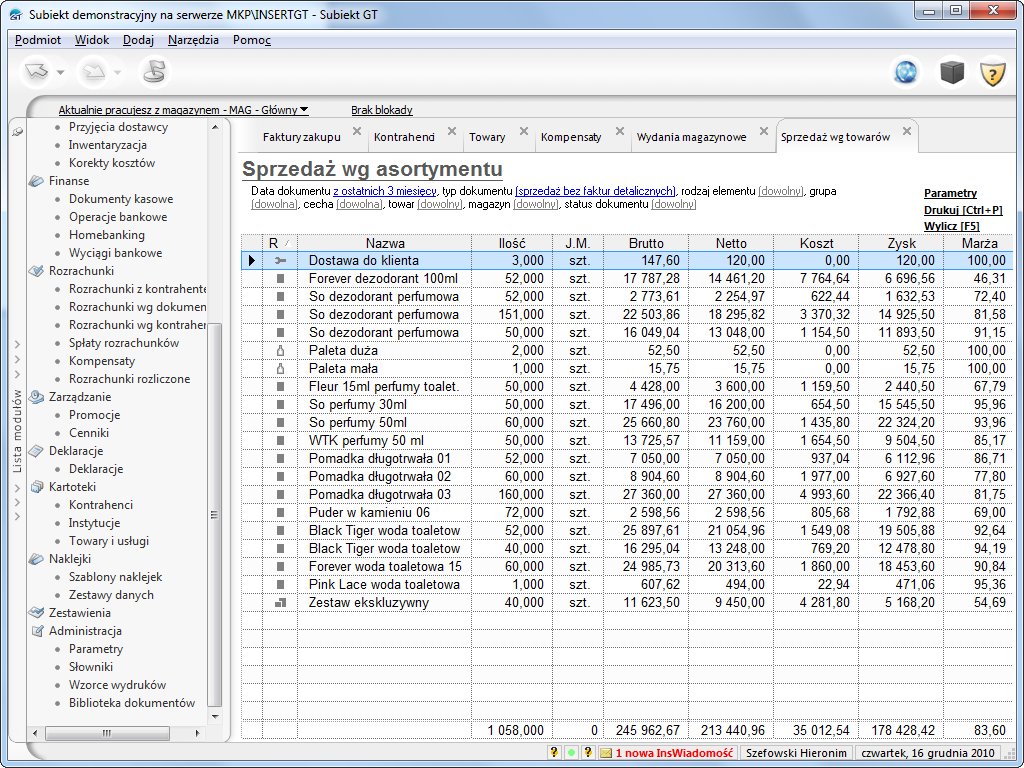 - wiele różnorodnych zestawień, raportów i analiz; możliwość tworzenia własnych raportów;