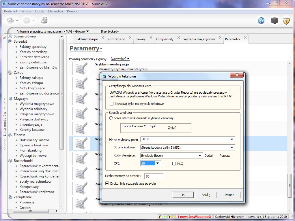 - rozbudowana obsługa urządzeń zewnętrznych (kasy fiskalne, drukarki fiskalne, wagi etykietujące, czytniki kodów paskowych);