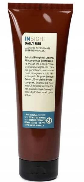 linia insight daily use energising bazuje na wyciągu z organicznej cytryny oraz odżywczym fitokompleksie: maśle z moreli, oleju ze słonecznika oraz oleju z kiełków kukurydzy. intensywnie nawilża bez zbędnego obciążania pasm. dodatkowo działa stymulująco na cebulki włosów, przez co włosy rosną szybciej, są zdrowe i nie kruszą się. w skład linii wchodzą: szampon bez sls/sles, odżywka do codziennej pielęgnacji, bogata maska nawilżająca.