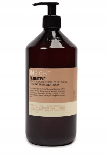 Insight Sensitive Skin Odżywka 900ml Łagodzi różnego rodzaju podrażnienia na skórze, bez pieczenia i jakiegokolwiek dyskomfortu przy jej użytkowaniu. Właściwości: Odżywka działa głęboko Chroni włosy