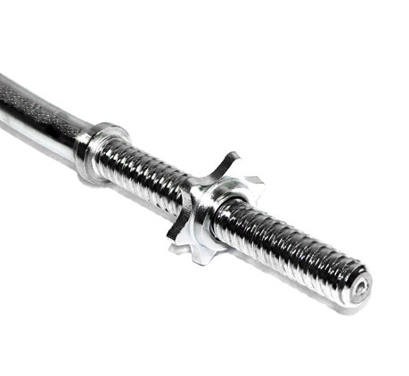 materiał: chromowana stal wysoka jakość uchwyty z antypoślizgowymi wgłębieniami przeznaczenie: na obciążenia z otworem o średnicy 30 mm długość gryfu: 86 cm średnica gryfu: 30 mm