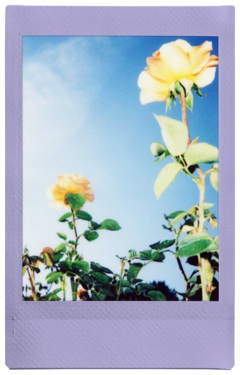 Dzięki jasnofioletowej ramce kliszy pod zdjęciami znajdziesz miejsce na notatki lub daty.