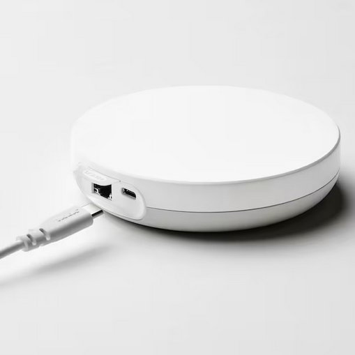 Inteligentna bramka DIRIGERA wymaga sieci Wi-Fi i łączy się z routerem za pomocą dołączonego przewodu.