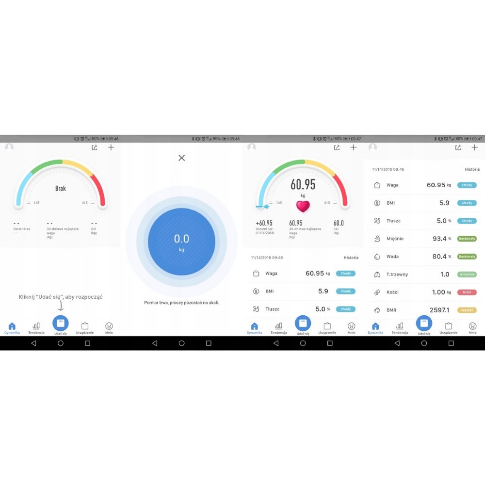 Waga współpracuje z bezpłatną aplikacją na smartfony - 'OKOK international', która umożliwia monitorowanie wyników, jak również ich interpretację.