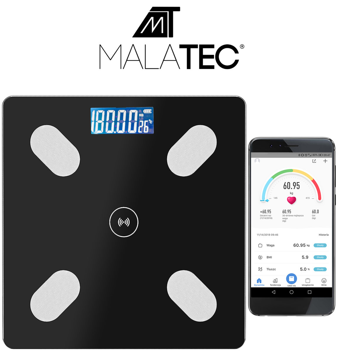 Wyniki swojego ważenia oraz innych pomiarów możesz wyświetlać i zapisywać na smartfonie. To praktyczny sposób, dzięki któremu informacje o formie fizycznej będą łatwo dostępne oraz uporządkowane. Aby aktywować tę funkcję wystarczy połączyć się z Wi-Fi lub Bluetooth, a następnie pobrać dedykowaną aplikację i sparować urządzenia.