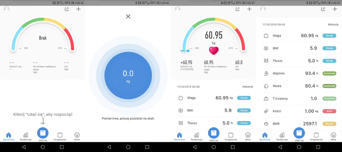 To urządzenie może zapamiętać wyniki ważenia. Dzięki tej funkcji nie trzeba będzie ręcznie zapisywać historii pomiarów. System urządzenia automatycznie zachowa informacje o masie ciała oraz (w zależności od funkcji sprzętu) rezultaty innych pomiarów. Wgląd w zmianę wagi ciała na przestrzeni czasu ułatwi śledzenie progresu i ewentualne podjęcie decyzji o zmianie diety.