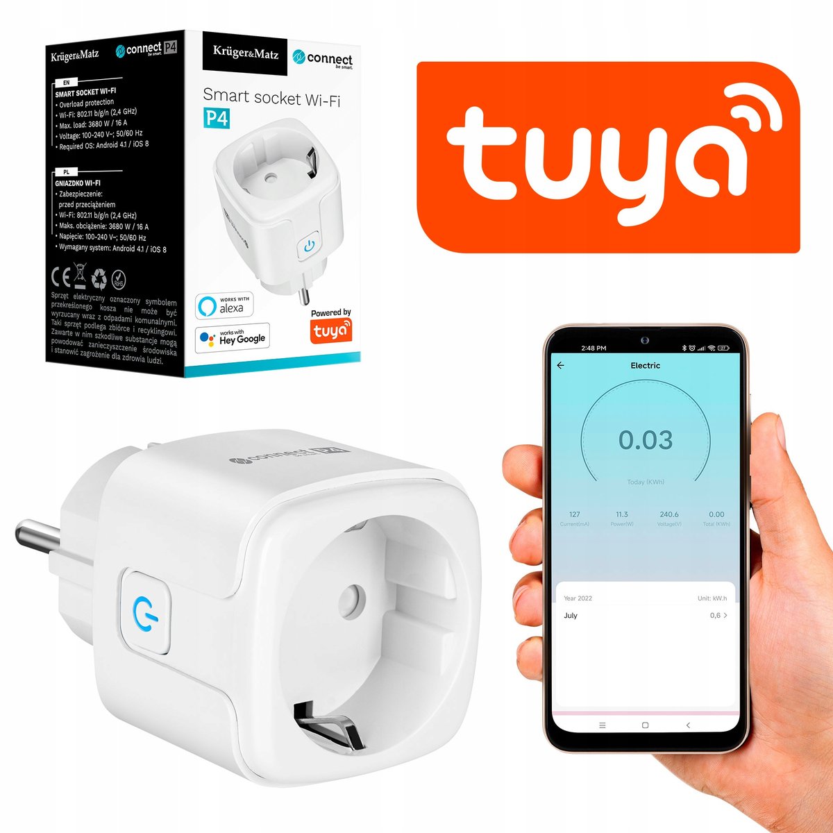 Gniazdo WiFi Kruger&Matz Connect P4 Tuya
