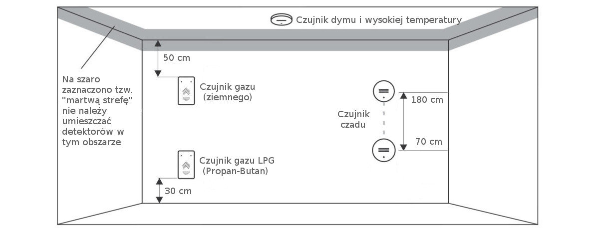 temperatury – montaż na suficie (najlepiej w centralnym punkcie