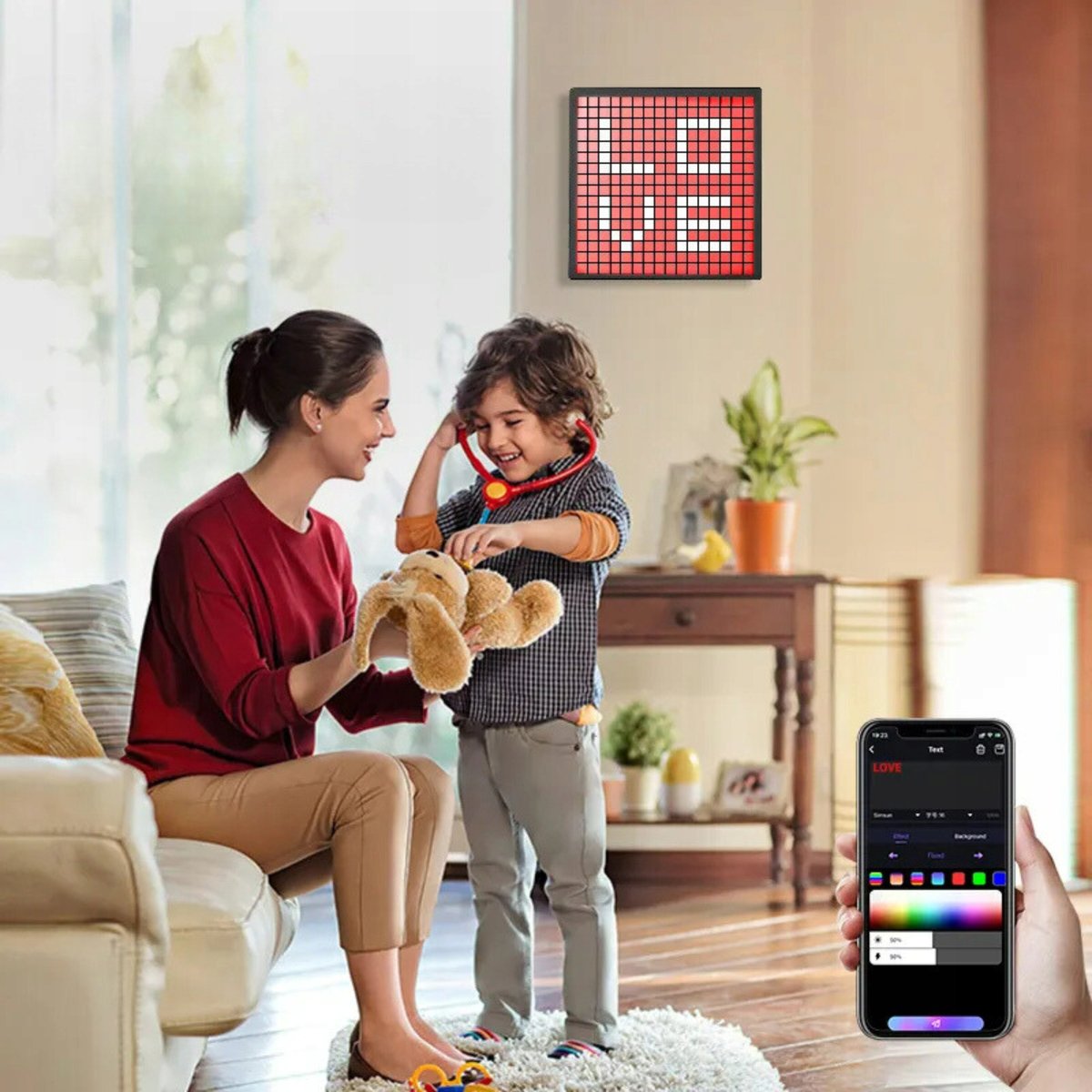Dodaj swoją osobistą nutę do dekoracji dzięki możliwości wyświetlania ulubionych cytatów, inspirujących słów czy nawet imion za pomocą wyświetlacza LED Pixel, który sprawi, że Twoje wnętrze nabierze charakteru.