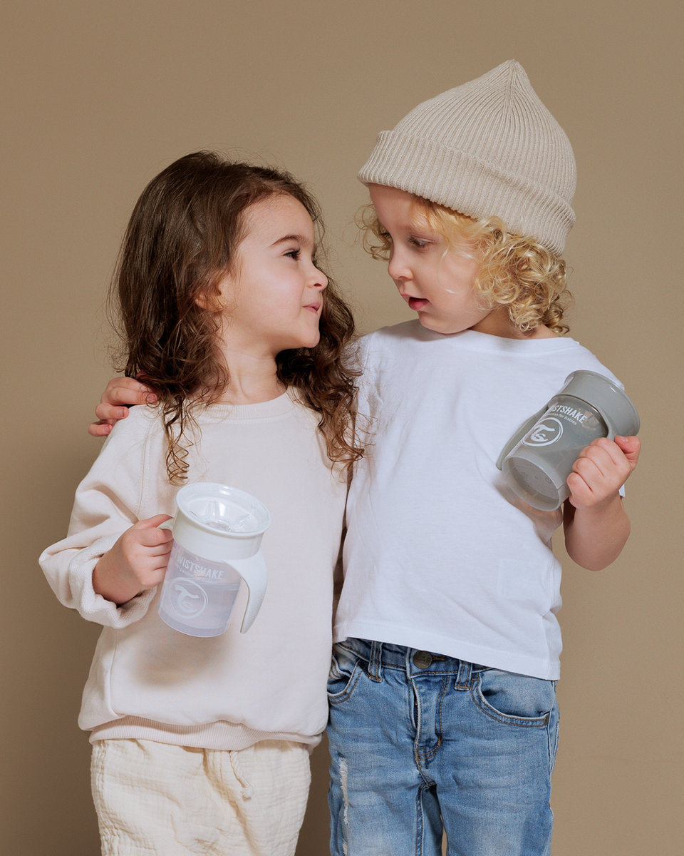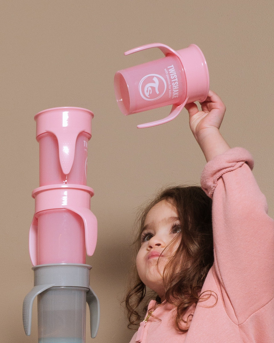 Twistshake 360 Cup to kubek treningowy dla maluchów z krawędzią do picia, która umożliwia picie ze wszystkich stron kubka, tak jak zwykła szklanka, ale bez rozlewania, stąd nazwa 360 Cup. Kubek posiada specjalną wkładkę silikonową, która sprawia, że jest całkowicie szczelny, nawet jeśli dziecko trzyma kubek do góry nogami. Kubek Twistshake 360 Cup nie przepuszcza napoju, gdy dziecko przestaje pić, dzięki czemu zapobiega rozlaniu.