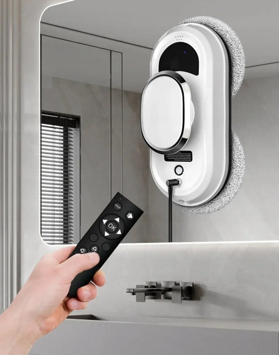 Dzięki sterowaniu pilotem oraz programowalnym trybom nadaje się do różnych szklanych powierzchni. Skutecznie wykrywa krawędzie i porusza się bezpiecznie po szybie, wykorzystując silną próżniową adsorpcję. Miękkie nakładki z mikrofibry oraz nowoczesne pierścienie czyszczące gwarantują dokładność bez ryzyka zarysowań. Wbudowane zabezpieczenie przed upadkiem oraz linka bezpieczeństwa chronią urządzenie w razie utraty zasilania.