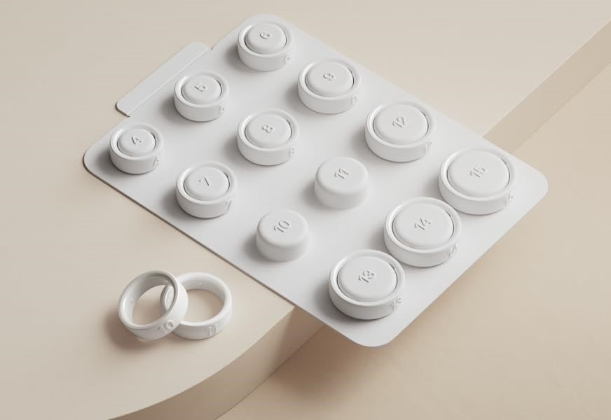 Zestaw próbny Oura Ring 4 to najlepsza możliwość uzyskania najwyższej dokładności pomiarów. Rozmiary pierścionka Oura 4 różnią się od tych standardowych, dlatego zalecamy kupienie zestawu próbnego. Zmierz za pomocą zestawu do pomiaru rozmiaru Oura Ring 4 i otrzymaj 99zł rabatu.