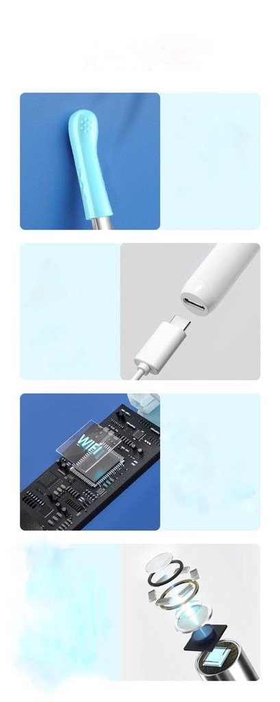 SMART OTOSKOP KAMERA CZYSZCZENIE USZU WOSK WIFI HD Dodatkowo Zestaw stalowych narzędzi do czyszczenia uszu Bezpieczny dla uszu: Otoskop posiada ultracienki obiektyw o średnicy 3,9 ...