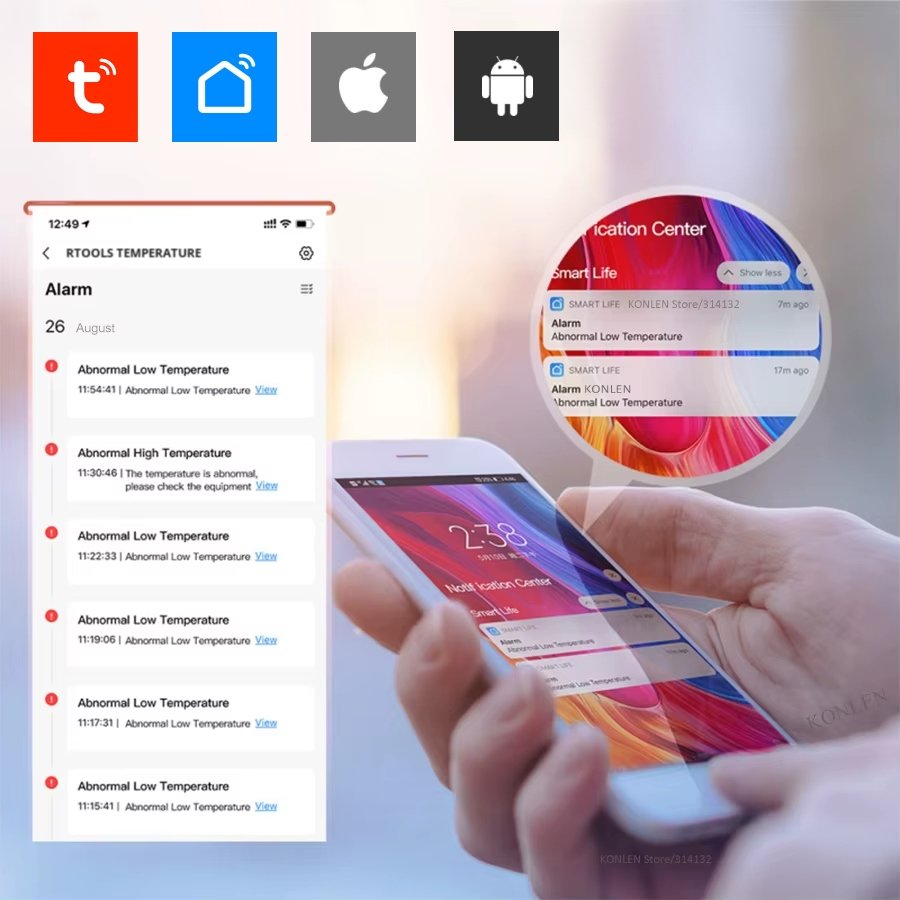 - Aplikacja Tuya/Smart Life: Intuicyjna aplikacja pozwala na zdalny odczyt temperatury, ustawianie alarmów, tworzenie wykresów i historii pomiarów.