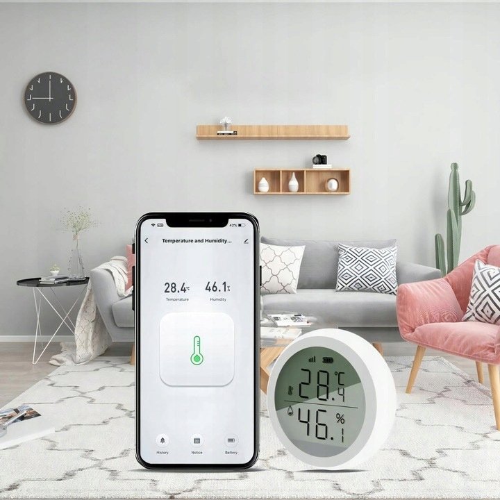Dzięki aplikacji TUYA możesz w czasie rzeczywistym monitorować temperaturę i wilgotność, a także ustawiać powiadomienia i automatyzacje. Na przykład, gdy wilgotność spadnie poniżej określonego poziomu, system może automatycznie włączyć nawilżacz powietrza. Integracja z asystentami głosowymi, takimi jak Google Assistant i Amazon Alexa, zapewnia jeszcze większą wygodę użytkowania.