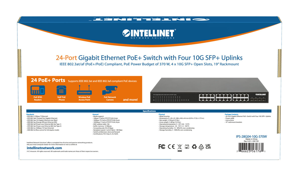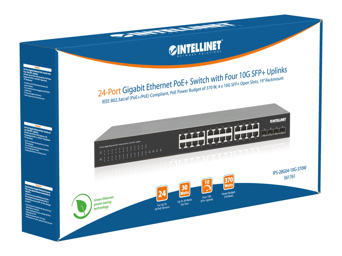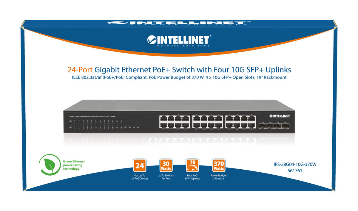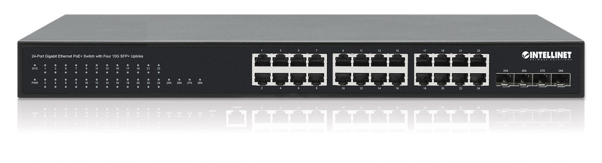 Intellinet 561761 - 24-portowy przełącznik Gigabit Ethernet PoE+ z 4 slotami SFP+ 10G Uplink