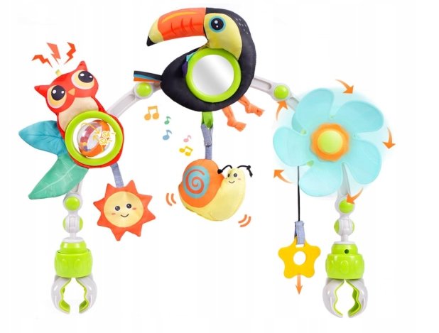 Łuk do wózka z zabawkami – interaktywna zabawka z muzyką, gryzakiem i lusterkiem
