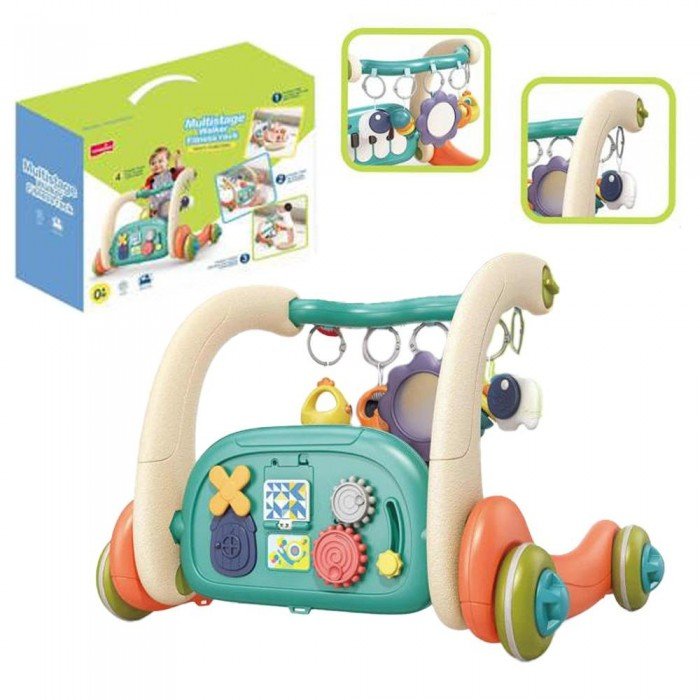 Interaktywny panel - chodzik dla maluchów Rośnie razem z dzieckiem, na początku może być matą sensoryczną z grzechotkami, dla siedzącego już dziecka interaktywną tablicą manipulacyjną, dla dziecka uczącego się chodzić wsparciem dla utrzymania równowagi - chodzikiem. Zasilanie: 3xAA (brak w zestawie) Wymiary opakowania: 44x18x33 cm