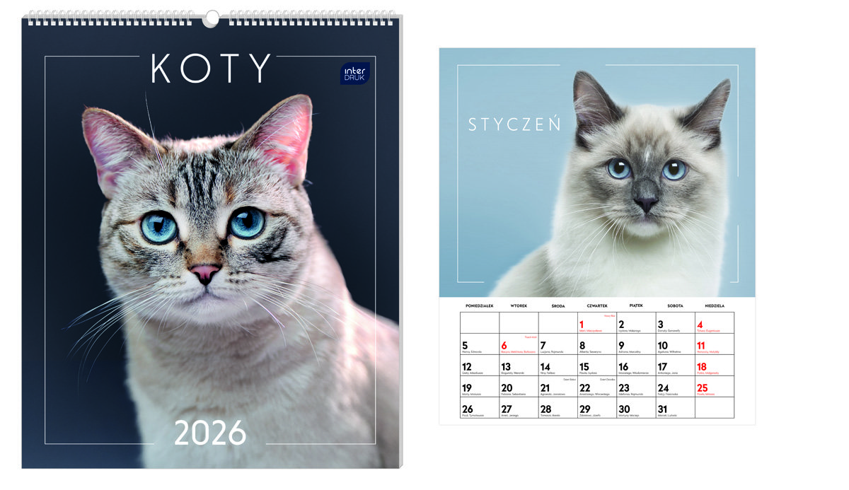 | Nazwa: | Interdruk, Kalendarz ścienny planszowy 33,5x40cm Koty |