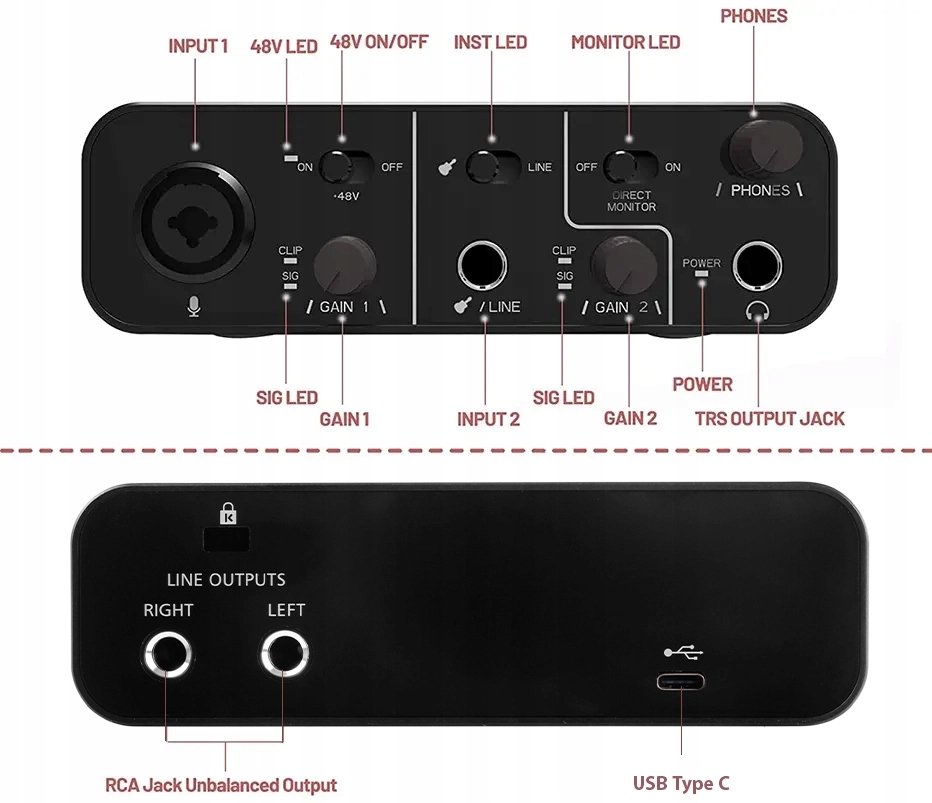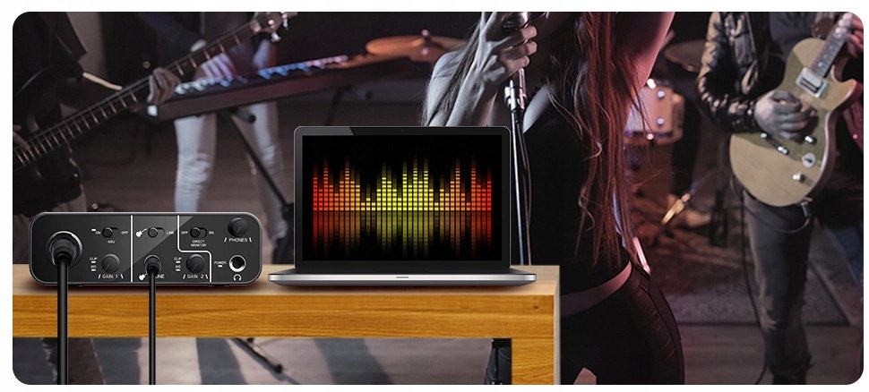 Nasz interfejs audio jest mały, lekki i łatwy do przenoszenia. Mały i estetyczny wygląd pozwala muzykom zabierać go na koncerty, studia nagraniowe, transmisje na żywo i próby. Nagrany dźwięk jest realistyczny jak w studio nagraniowym.