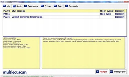 - Wyświetla szczegółowy opis kodów błędu, parametrów i testów