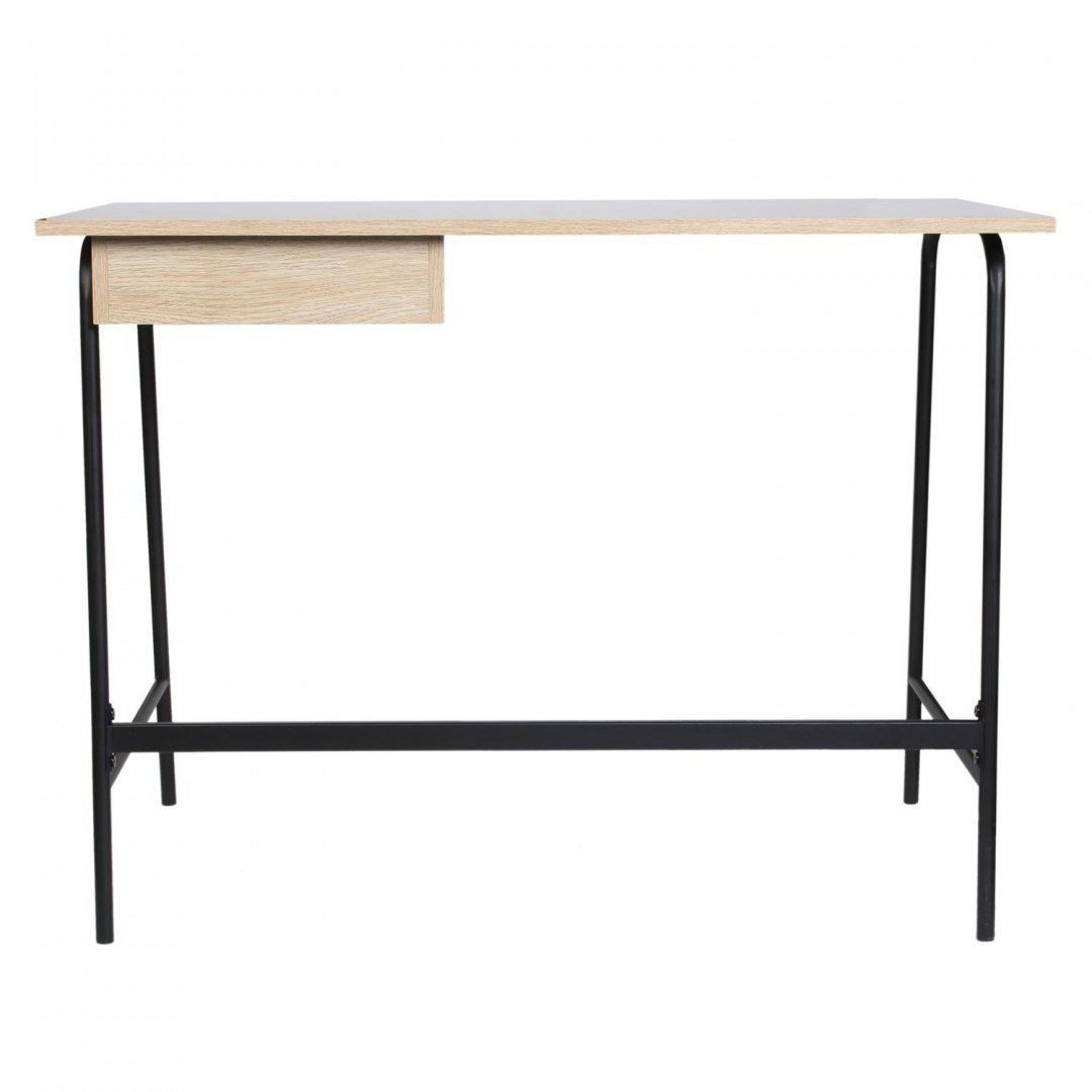Biurko Stanford przydają się nie tylko w pokoju ucznia, ale również w domowym gabinecie. Wygodę pracy przy biurku gwarantuje duży blat z płyty MDF, który dodatkowo został pokryty czarną półmatową okleiną. Biurko Stanford nie tylko pozwoli na komfortową pracę, ale także doskonale wpisze się w stylowy pokój nastolatka lub studenta. Blat biurka podpierają metalowe, pomalowane na czarno nogi. Zostały one wzmocnione poprzeczkami, które gwarantują stabilność mebla. Pod blatem została zamontowana szuflada na drobiazgi. Szuflada ozdobiona została okleiną imitującą jasny dąb.