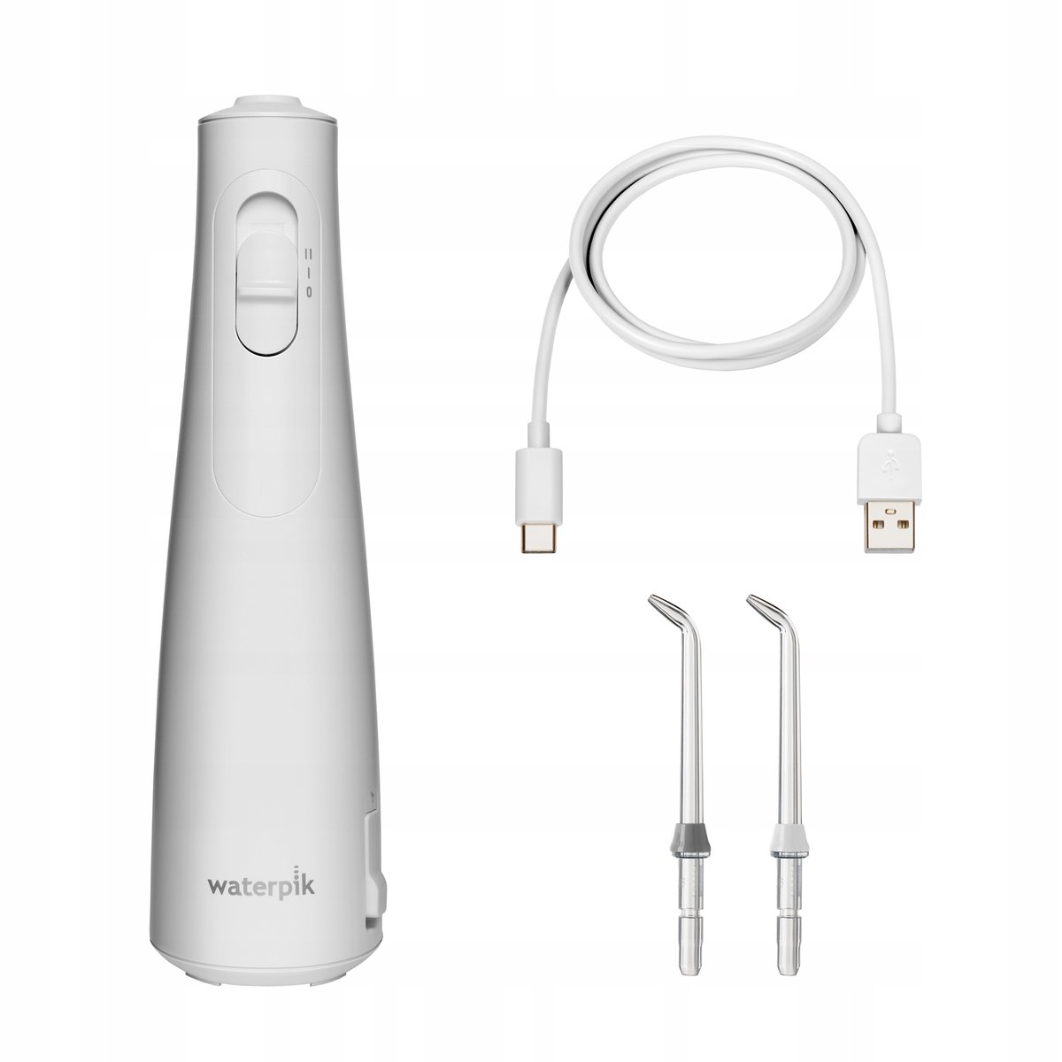 Irygator Waterpik WF-21 Cordless Enhance jest wyposażony w 2 końcówki do nitkowania, posiada 2 poziomy ciśnienia wody, kabel USB w zestawie oraz wyjmowany zbiornik na wodę pozwalający na nitkowanie wodne trwające do 45 sekund.