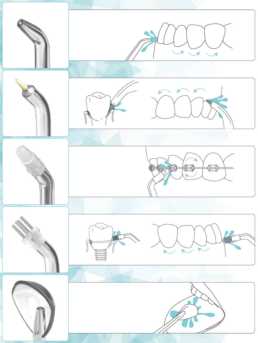 - DYSZA DO CZYSZCZENIA KIESZENI PRZYZĘBIA (1 sztuka) - miękka nasadka, która pomoże skutecznie oczyścić przestrzenie dziąsłowe i dotrzeć do problematycznych miejsc jamy ustnej.