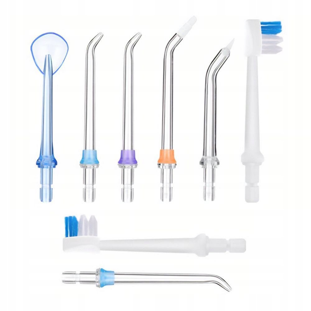 Irygator jest wyposażony w 8 wymiennych dysz, co zapewnia szeroki zakres funkcjonalności. Umożliwia indywidualne dopasowanie strumienia wody do potrzeb każdego użytkownika oraz różnych zastosowań, takich jak czyszczenie zębów, masaż dziąseł czy usuwanie resztek pokarmowych. Ta możliwość zapewnia użytkownikom komfort oraz elastyczność w użytkowaniu irygatora.