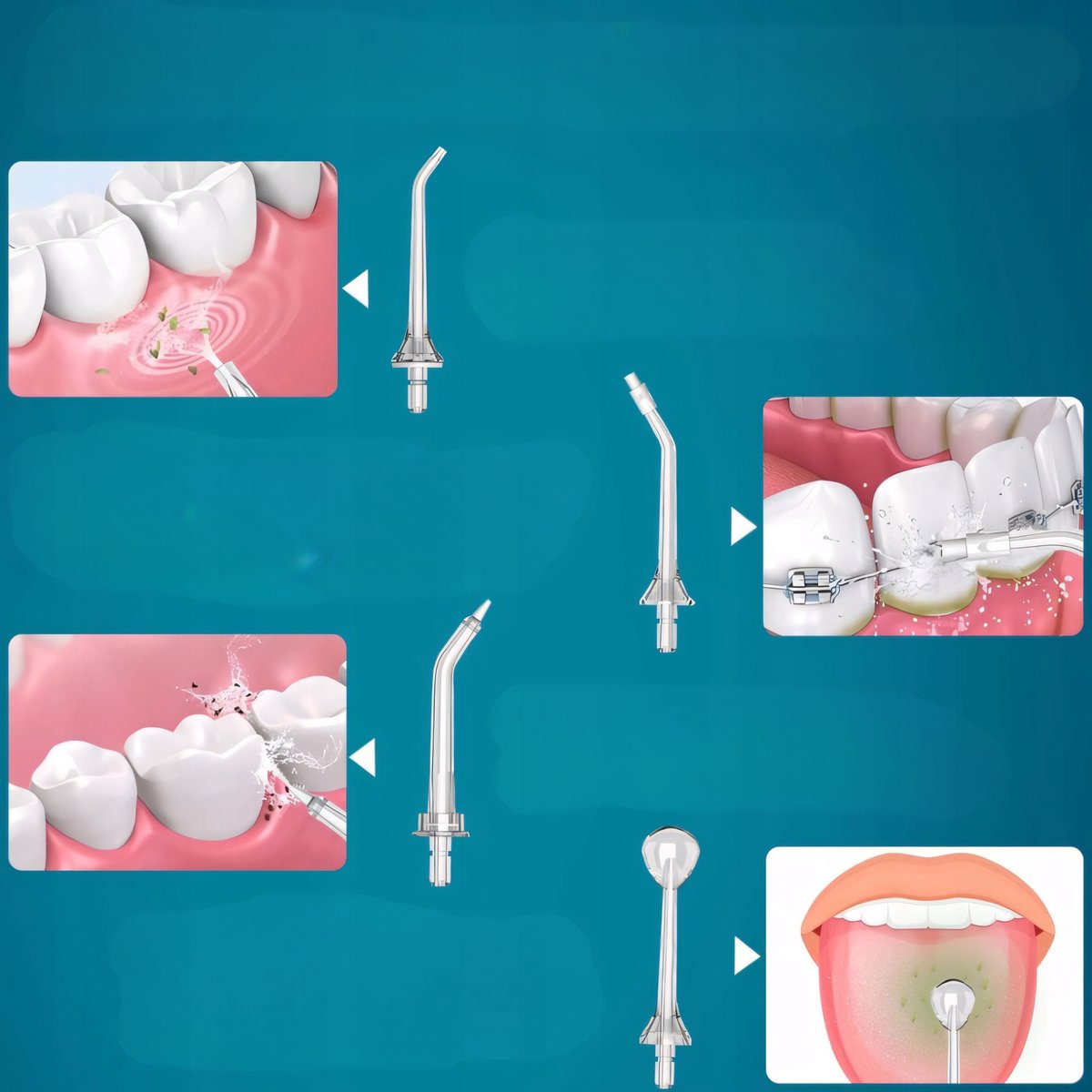 ✔️ Obrotowa dysza 360° – precyzyjne czyszczenie wszystkich zakamarków jamy ustnej