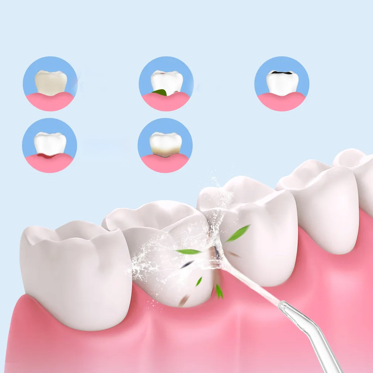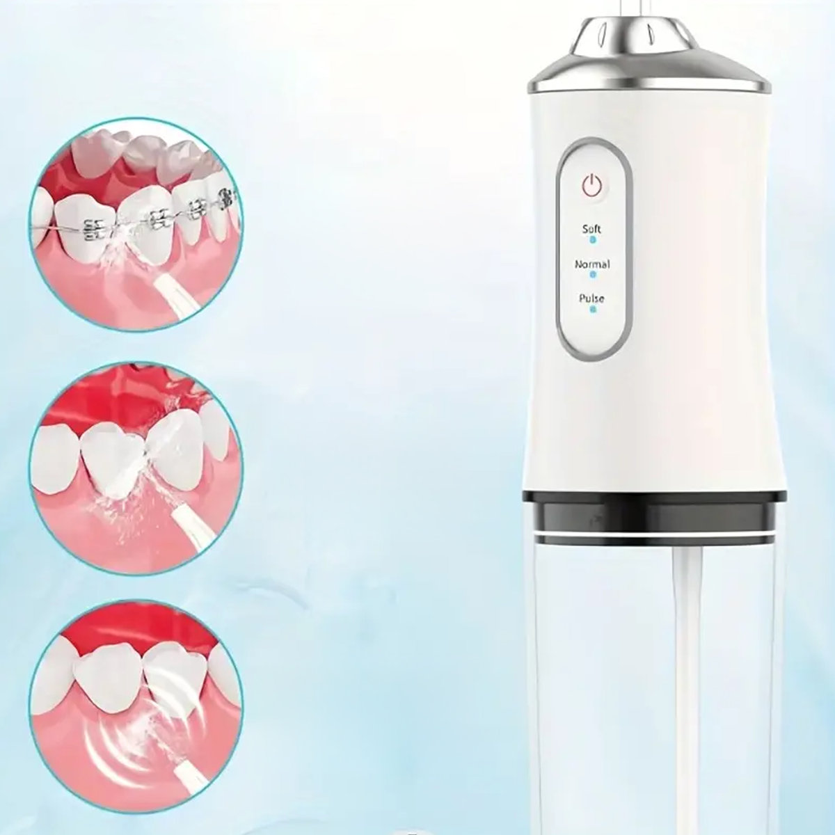 Dzięki wysokociśnieniowemu impulsowi wody, urządzenie usuwa aż 99,99% resztek jedzenia, wspomaga krążenie krwi oraz redukuje krwawienie dziąseł i zapach z ust. Dodatkowo, tryb delikatny zapewnia łagodniejsze czyszczenie oraz umożliwia użytkowanie przez osoby z wrażliwymi zębami.