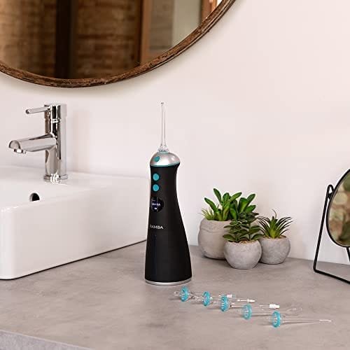 Cecotec Przenośny irygator do ust Bamba ToothCare 1100 Jet Liberty. 6 trybów użytkowania i 6 dysz Wyświetlacz LED Pojemność 280 ml 8 ustawień ciśnienia IPX7 Ładowanie USB i torba podróżna • Jego ...