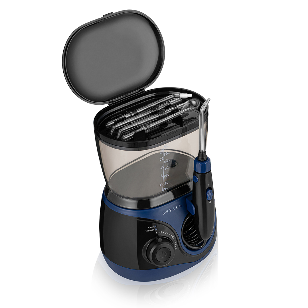 Irygator stacjonarny SEYSSO Planet został zaprojektowany z myślą o wygodnym oczyszczaniu jamy ustnej. Magnetyczna rączka połączona jest z urządzeniem przez metrowy przewód, który podaje wodę pulsacyjnie. Dzięki jego długości, każdy użytkownik precyzyjnie i wygodnie dotrze w każdą przestrzeń jamy ustnej. Ponadto wieczko irygatora zawiera schowek na wszystkie wymienne końcówki wraz z ich opisami.